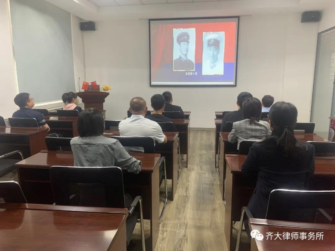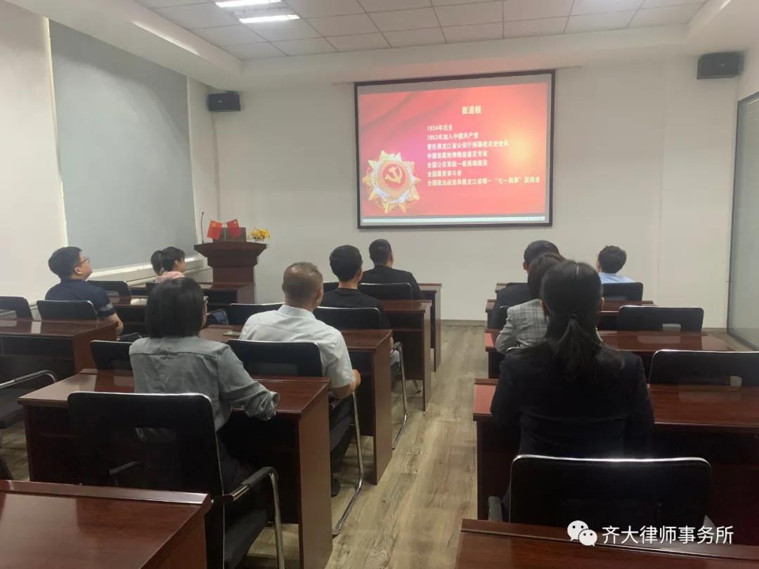 黑龙江齐大律师事务所组织律所党员观看“信仰之光,道植力量---”崔道植同志先进事迹报告会